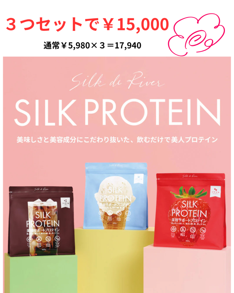 シルクプロテイン(コーヒー味,バニラ味,いちご味セット)まとめ買いでお得です🉐